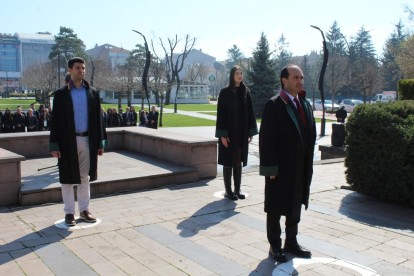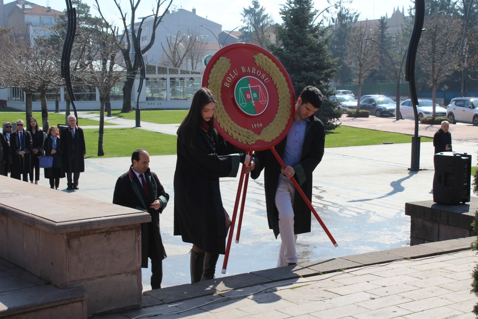 06.04.2026 5 Nisan Avukatlar günü sebebiyle Baro Başkanı Av. Sinan BARUT, Baro Yönetim Kurulu Üyeleri ve Baromuz mensubu meslektaşlarımızın katılımıyla Bolu Anıt Park Atatürk Anıtına çelenk sunumu töreni gerçekleştirildi. Gazi Mustafa Kemal ATATÜRK ve silah arkadaşları ile şehitlerimiz için saygı duruşu ve istiklal marşı ile Baro Başkanımızın konuşmasının ardından tören sona erdi. 5 Nisan Avukatlar Günümüz kutlu olsun.