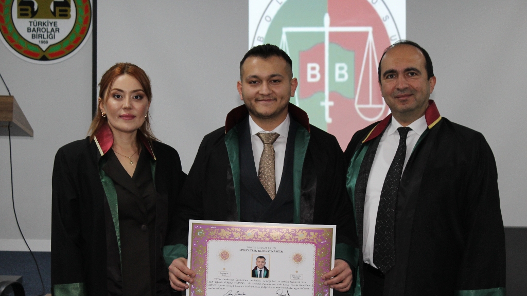 29.12.2025 Bolu'da stajını tamamlayarak mesleğine resmi olarak adım atan Furkan TÜRKER avukatlık mesleğine katılmıştır. Baro Başkanı Av. Sinan BARUT'un konuşmasının ardından Avukat Furkan TÜRKER yemin ederek ve Türkiye Barolar Birliği Ruhsatnamesini alarak avukatlığa başlamıştır. Bolu Barosu olarak avukatımıza meslek hayatında başarılar dileriz.